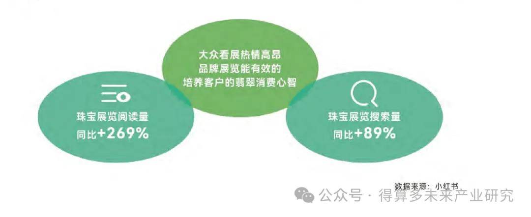 2024年大型珠寶玉石展以及中小規(guī)模的翡翠巡展更加熱鬧。品牌與珠寶達(dá)人主動(dòng)下沉,拉近與大眾消費(fèi)者的距離,在滿足大眾看展熱情的同時(shí),讓更多人有機(jī)會(huì)近距離感受翡翠的文化以及魅力。通過文化種草、珠寶鑒賞,深化大眾對(duì)翡翠文化的認(rèn)同,加強(qiáng)翡翠商家與消費(fèi)者之間的鏈接,建立起線上線下客戶從公域到私域的轉(zhuǎn)化通道。